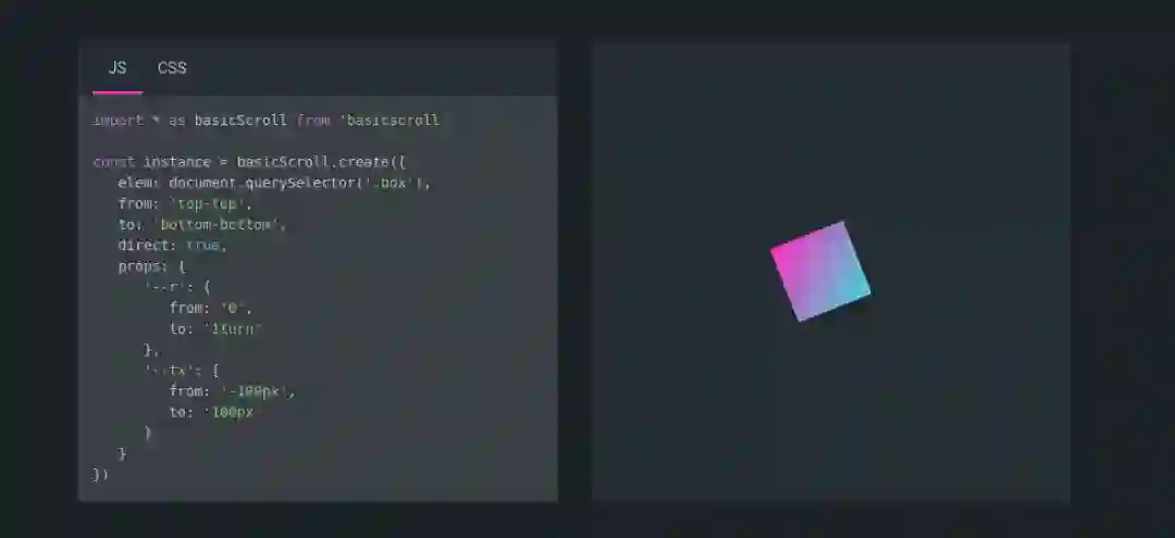 该库使你可以在你的设计中添加 parallax 滚动动画效果。你可以直接在你的 CSS 中使用变量和属性,或者使用 JS 来获得更好的动画效果。它运行非常流畅,独立于框架,在桌面和移动设备上非常出色,并且支持触屏输入。