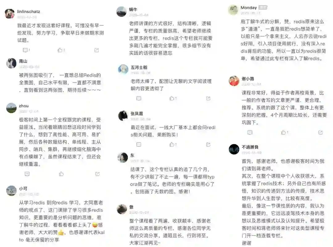去年,订阅了他的专栏 《Redis 核心技术与实战》,追着更新看了一遍,今年抽空又二刷了,不仅原理讲得透彻,实战性也强。很多问题之前没有深入思考过,跟着专栏敲代码测试和分析了源码细节,让我对 Redis 有了更深入的理解。发文前看了下,订阅已经 21,000+ 了。