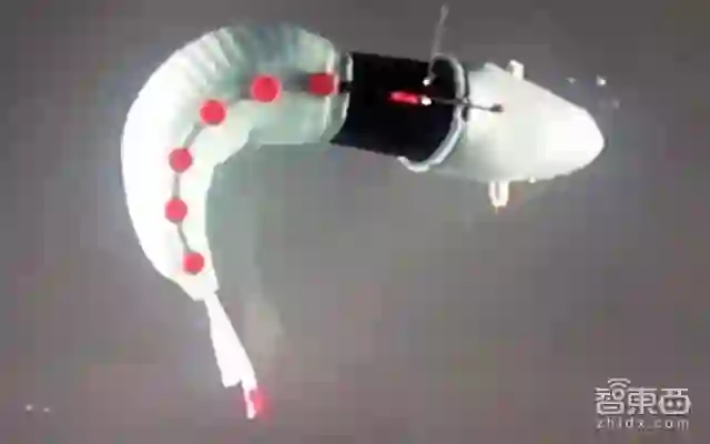 2014年美国发明了一款软体机器鱼,不仅防水,而且还能模拟快速游动的鱼类。它由硅橡胶制成,能够瞬间改变移动方向,这是首个能够快速移动身体的独立自控软体机器人。机器鱼通过释放腹小罐的二氧化碳提供动力,将通过波状通道使机器鱼尾发生弯曲,在二氧化碳罐耗尽之前机器鱼能够实现30次游动。