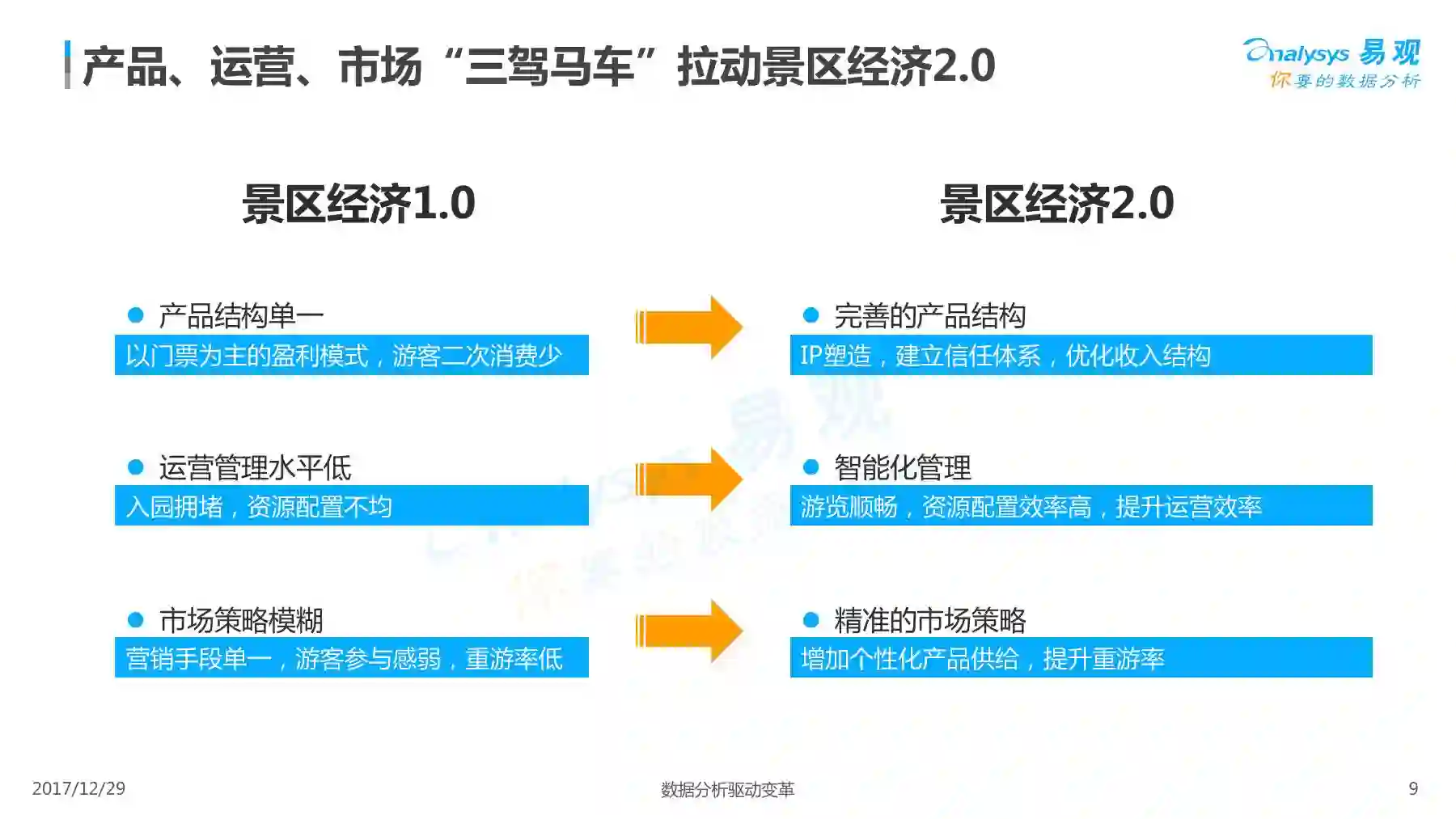 随着互联网化程度的提高,消费主力的演变,景区的方方面面正在发生着深刻的变化。在OTA和新技术的助力之下,景区经济正在从过度依赖门票收入的1.0阶段迈向”景区经济2.0“。其主要特征集中在景区产品,管理运营和市场营销三方面思维的变化,而这些变化的发生、验证与积累的过程则成为我国旅游业质量提升过程的缩影。