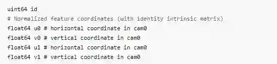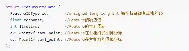 主要发布了当前帧特征点的数据,每个特征的数据结构为FeasureMeasurement如下: