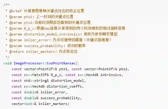 整个流程还算比较清晰,但是有一个步骤需要单独说明一下,也就是作者在论文中提到的twoPointRansac的方法.我们先来看一下函数原型: