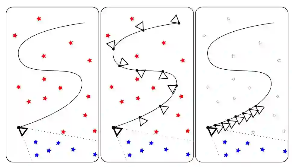 MSCKF (Multi-State Constraint Kalman Filter),从2007年提出至今,一直是filter-based SLAM比较经典的实现.据说这也是谷歌tango里面的算法,这要感谢Mingyang Li博士在MSCKF的不懈工作。在传统的EKF-SLAM框架中,特征点的信息会加入到特征向量和协方差矩阵里,这种方法的缺点是特征点的信息会给一个初始深度和初始协方差,如果不正确的话,极容易导致后面不收敛,出现inconsistent的情况。MSCKF维护一个pose的FIFO,按照时间顺序排列,可以称为滑动窗口,一个特征点在滑动窗口的几个位姿都被观察到的话,就会在这几个位姿间建立约束,从而进行KF的更新。如下图所示, 左边代表的是传统EKF SLAM, 红色五角星是old feature,这个也是保存在状态向量中的,另外状态向量中只保存最新的相机姿态; 中间这张可以表示的是keyframe-based SLAM, 它会保存稀疏的关键帧和它们之间相关联的地图点; 最右边这张则可以代表MSCKF的一个基本结构, MSCKF中老的地图点和滑窗之外的相机姿态是被丢弃的, 它只存了滑窗内部的相机姿态和它们共享的地图点.