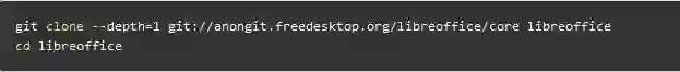 记得加上 --depth=1 参数,因为 libreoffice 项目比较大,进行全量克隆会比较费时间,对于编译来说 git 提交历史没有意义。