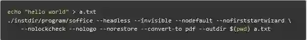 使用如下命令,测试一下编译出来的 soffice 是否能正常将 txt 文件转换成 pdf 文件。