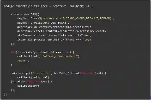 借助 OSS 运行时下载解压,以绕过 zip 程序包 50M 的限制;