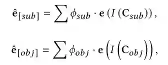 Type Marker 方法可以额外引入实体的类型信息以提高性能,但需要对类型信息进行额外注释,而实体类型标注在数据集中并不总是可用的。因此,我们通过特定关系中包含的先验知识而不是注释来获得潜在实体类型的范围。例如,给定关系“per:country_of_birth”,很明显与该关系匹配的头实体属于“人”,而与该关系匹配的尾实体属于“国家”。直观地说,我们根据关系类型分别估计在候选集𝐶𝑠𝑢𝑏和𝐶𝑜𝑏𝑗上的潜在实体类型对应的先验分布𝜙𝑠𝑢𝑏和𝜙𝑜𝑏𝑗,其中先验分布是通过频率统计来得到的。我们在实体周围分配虚拟类型词,这些词使用一组潜在实体类型的聚合嵌入进行初始化。由于初始化的虚拟类型词对于特定实体来说不是精确类型,这些可学习的虚拟类型词可以根据上下文动态调整,起到类弱化的Type Marker的作用。具体初始化方法如下: