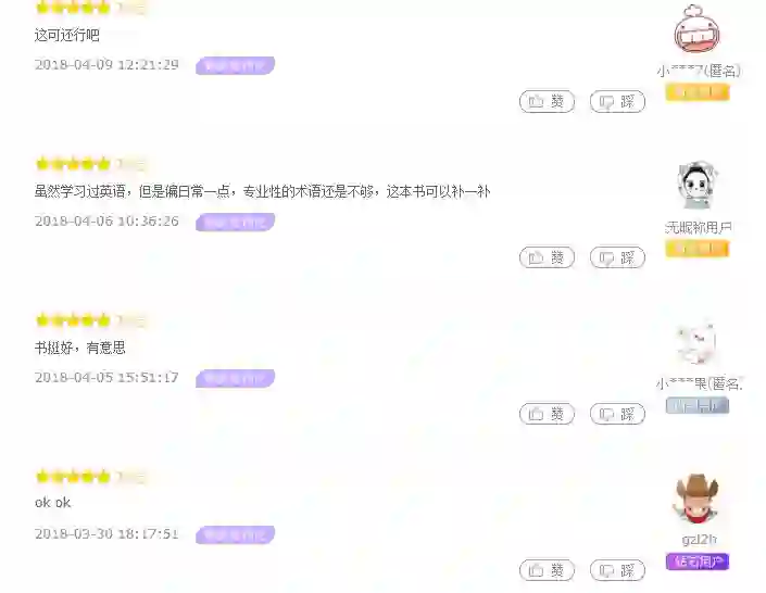 翻了一下网店的评论,刚上架评论暂时不多,有一部分小伙伴还在等书来,另一部分估计已经沉浸在英语的世界里,无暇顾及评论了。目前已知的评论都还不错!后续收到书的小伙伴,也期待大家到评论区说说你对这本书的看法,我们会尽量为大家提供学习的便利。