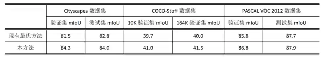表 1 本方法与现有最优语义分割方法比较