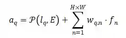 通过adaption的特征向量,我们在gathering stage中增强每个像素的特征向量,计算如下。