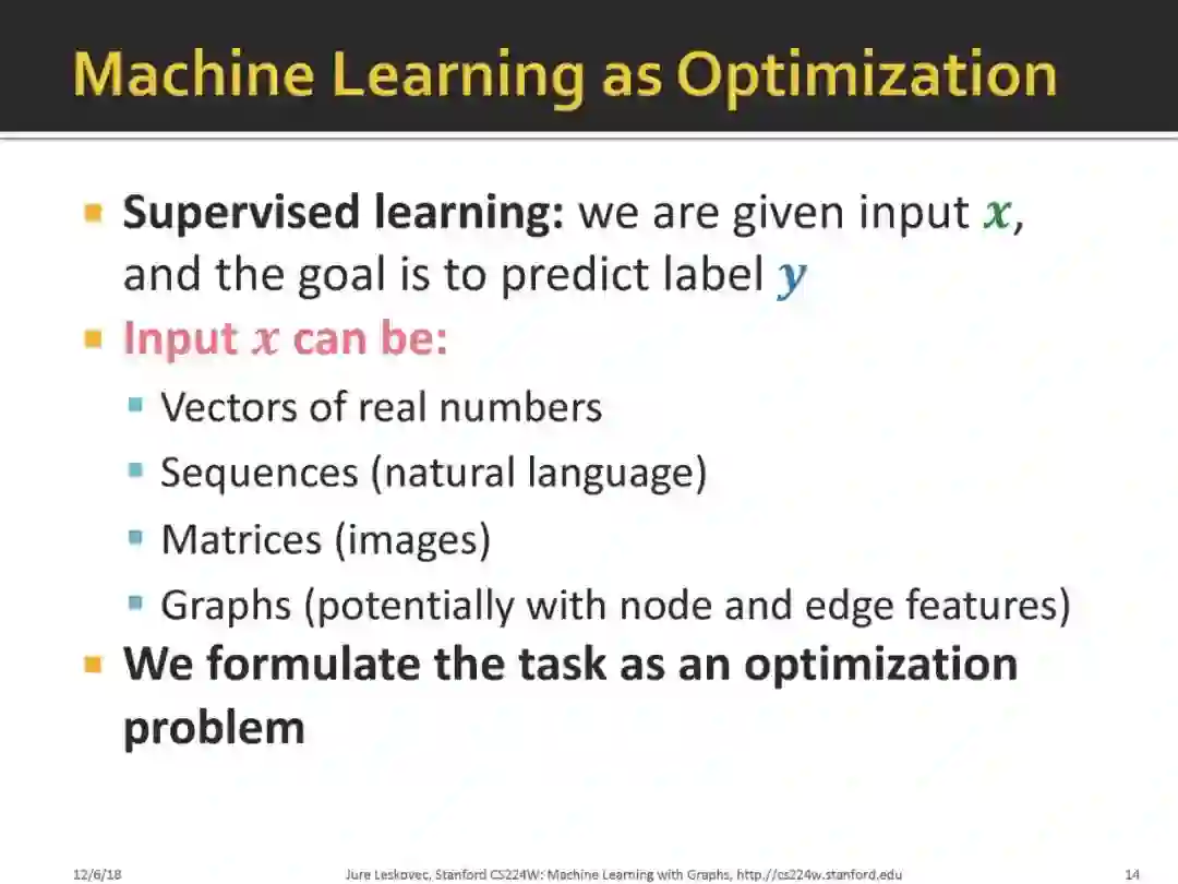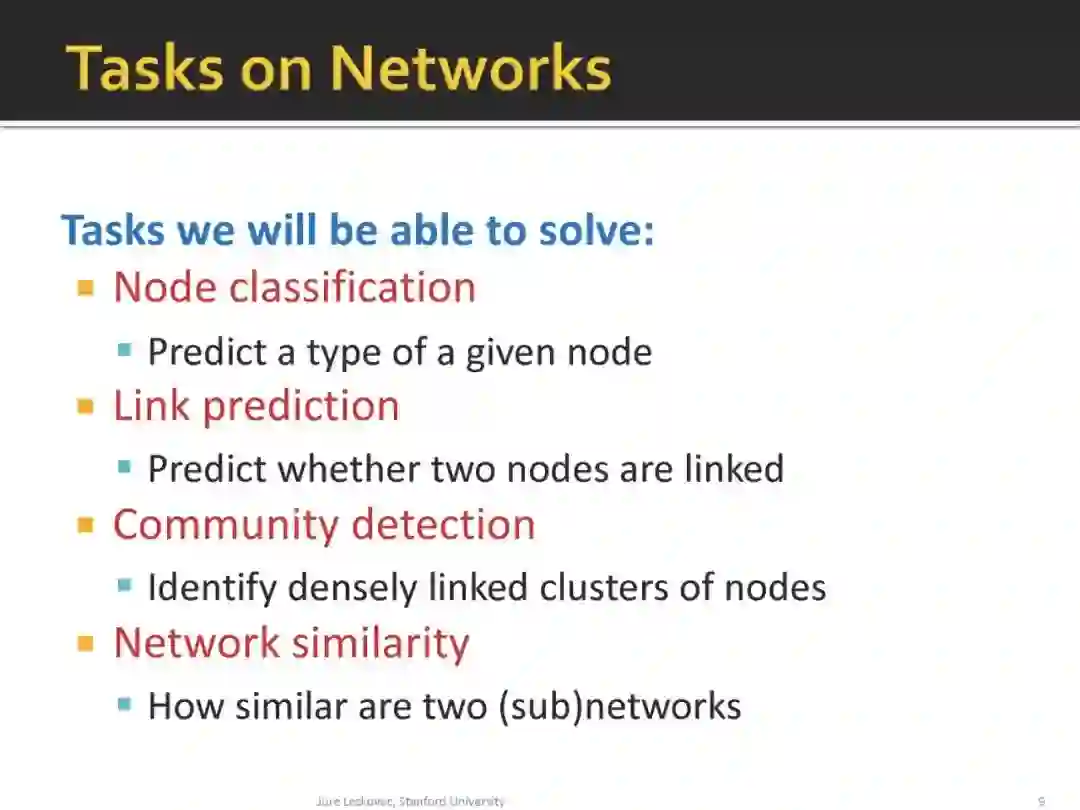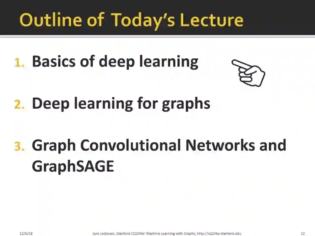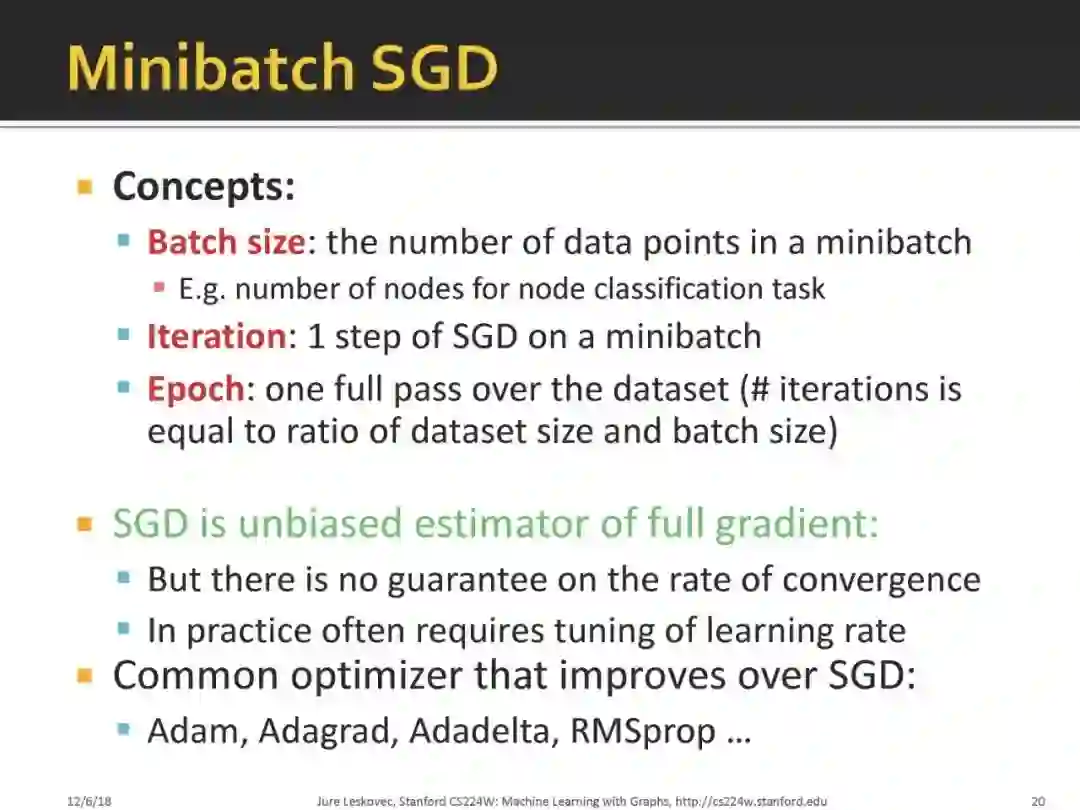 斯坦福大学的最新课程CS224W——图机器学习,主讲人是斯坦福大牛Jure Leskovec,他是斯坦福大学计算机学院的副教授,也是图表示学习方法 node2vec 和 GraphSAGE 作者之一。最新讲述了关于图神经网络模型总结,内容包括: