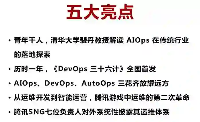 咖啡党、杨军、涂彦、胡飞雄四位老师联袂为我们分享腾讯内部运维建设之路方方面面的经验。从运维开发到智能运营,再到 AIOps,干货十足,收获满满。