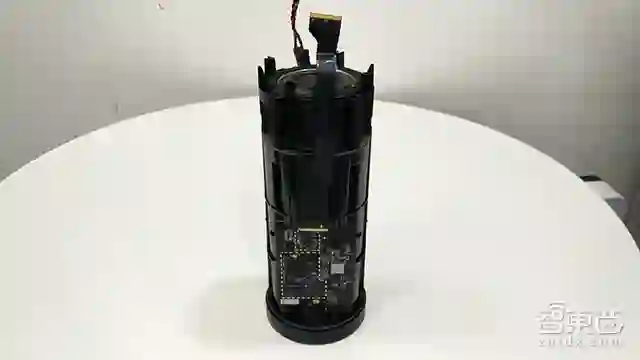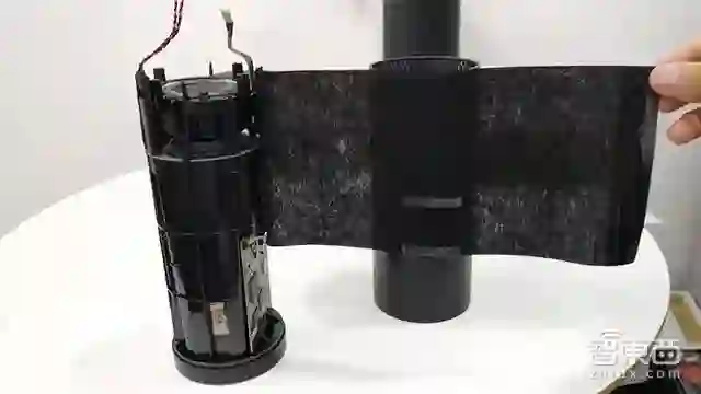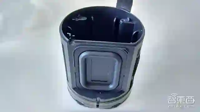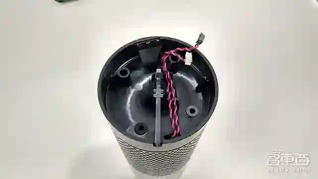 取出扬声器,再移除内筒内的的4颗螺丝钉,就可以将天猫精灵的外壳和内筒分离。内筒一侧有一个振膜,通过震动增强扬声器的低音效果。