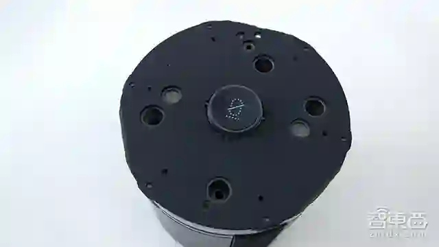 天猫精灵的拆解需要从底部开始,撕开底部的橡胶垫并移出3颗螺丝钉,就可以掀开底座,看到白色的环形导光板和灯控电路板了。