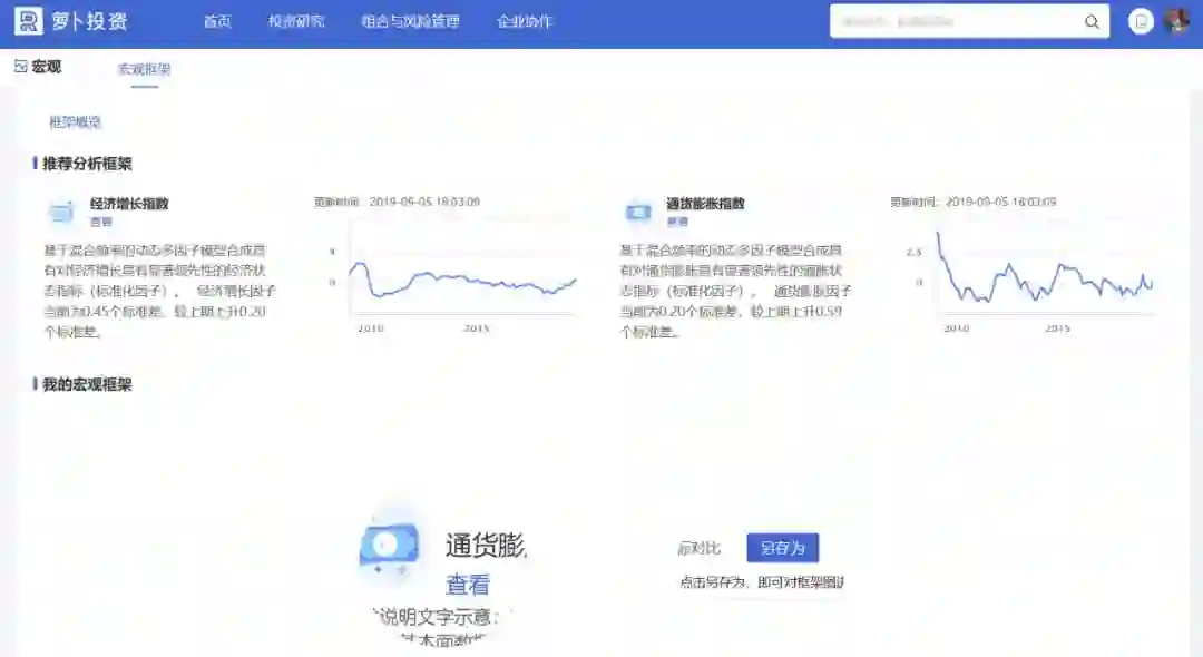 萝卜投资致力于打造智能投资时代的一体化资产管理工具。通过搭建自上而下的科学投研体系,将机器擅长的计算逻辑模型化,最终实现人机结合的智能预测模型。它的功能不仅限于预测经济/行业/公司的长期发展趋势,还能对标的当前状态做出临时预报。