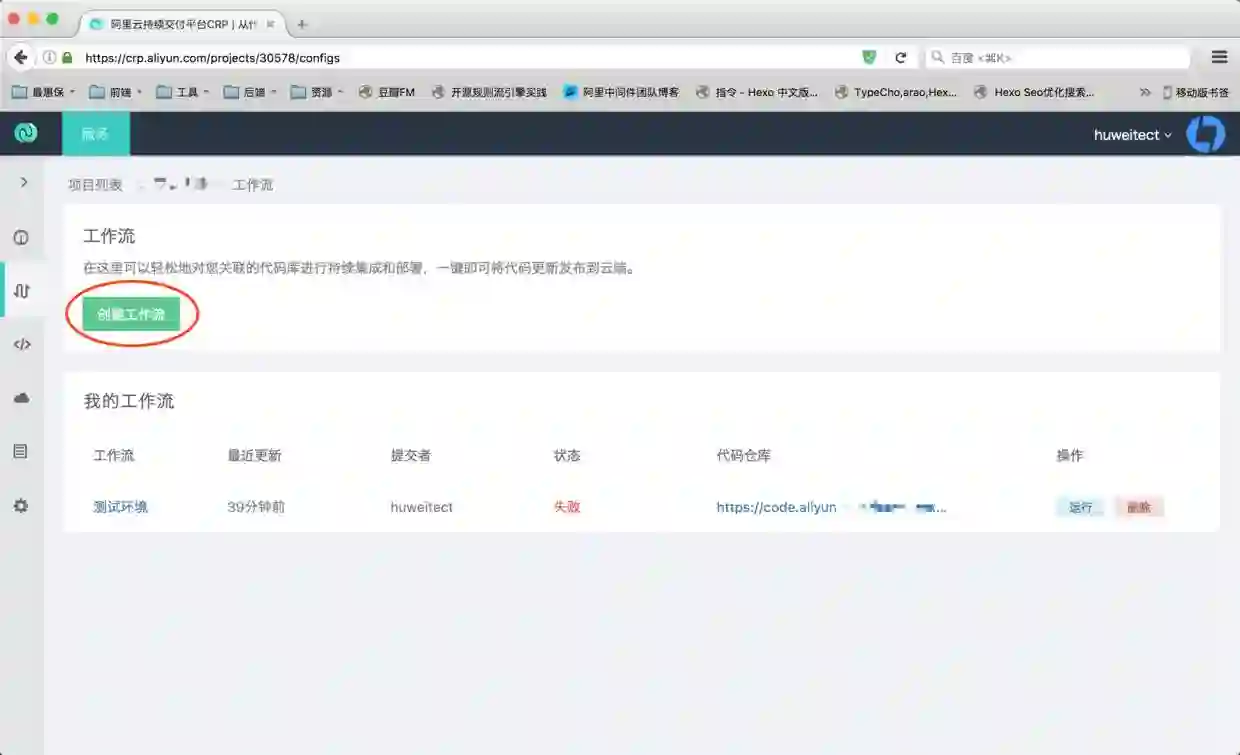 笔者这里使用的是OSCGit托管代码的,但是CRP只能从阿里code中拉取代码,所以难题就是怎么打通阿里code和OSCGit,让提交到OSCGit的代码怎么同步到阿里code,自建Git服务器可以使用GitHooks,但是OSCGit,以及GitHub只提供了Webhooks,后面我们在来说怎么使用WebHook同步代码。