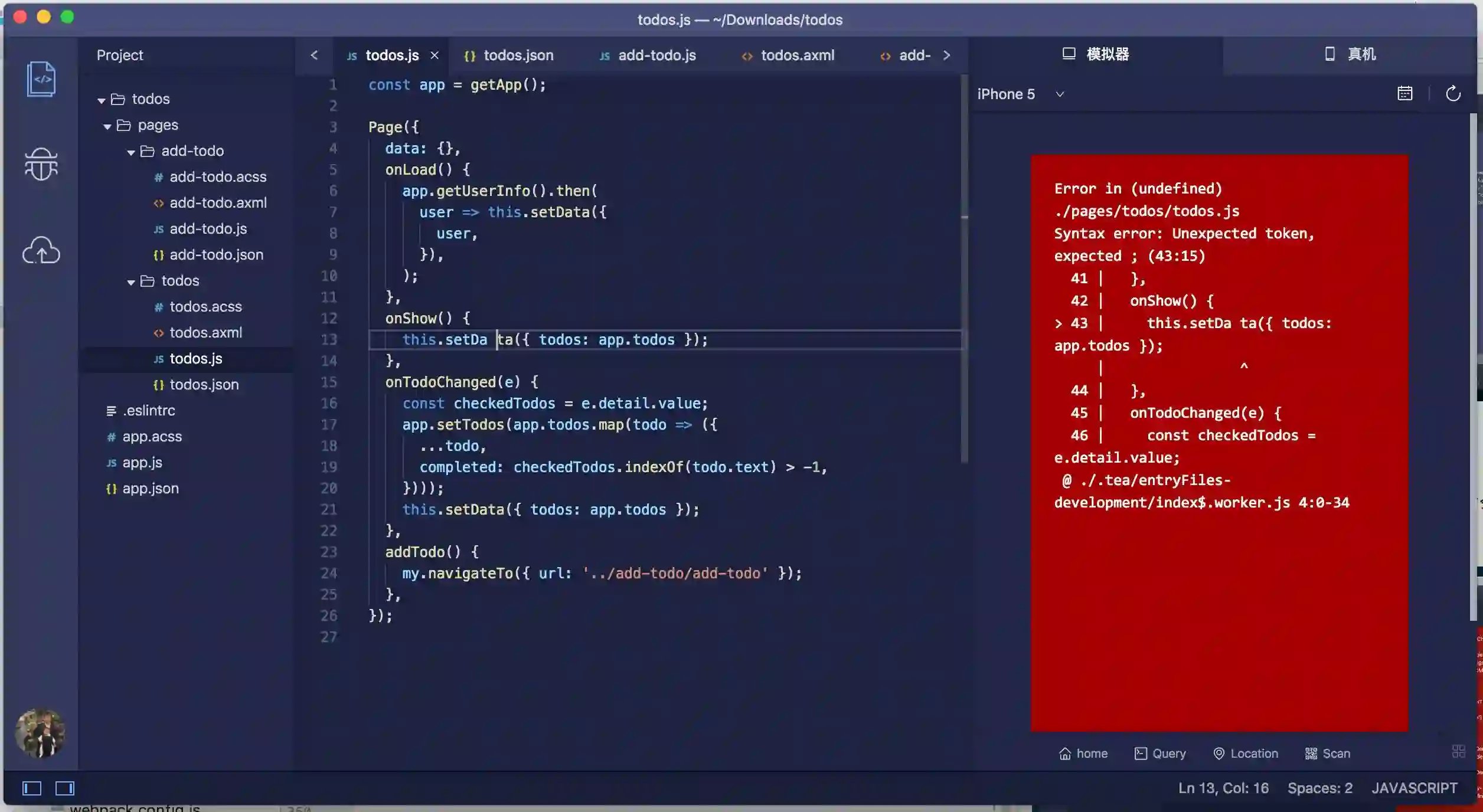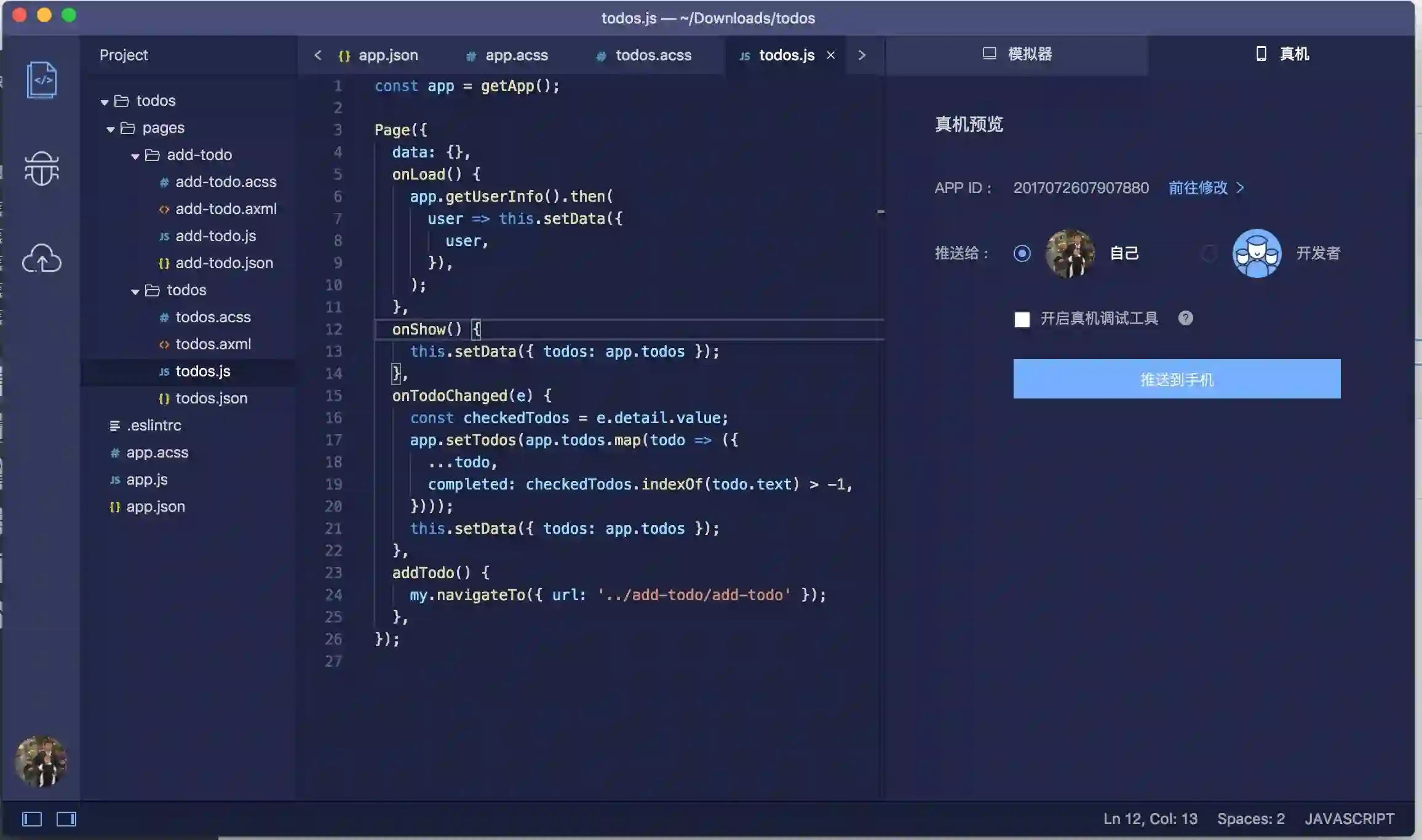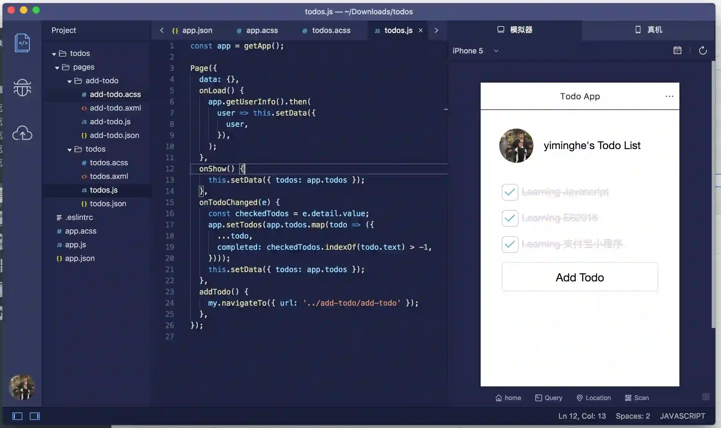 todos.js 是页面的逻辑脚本文件: