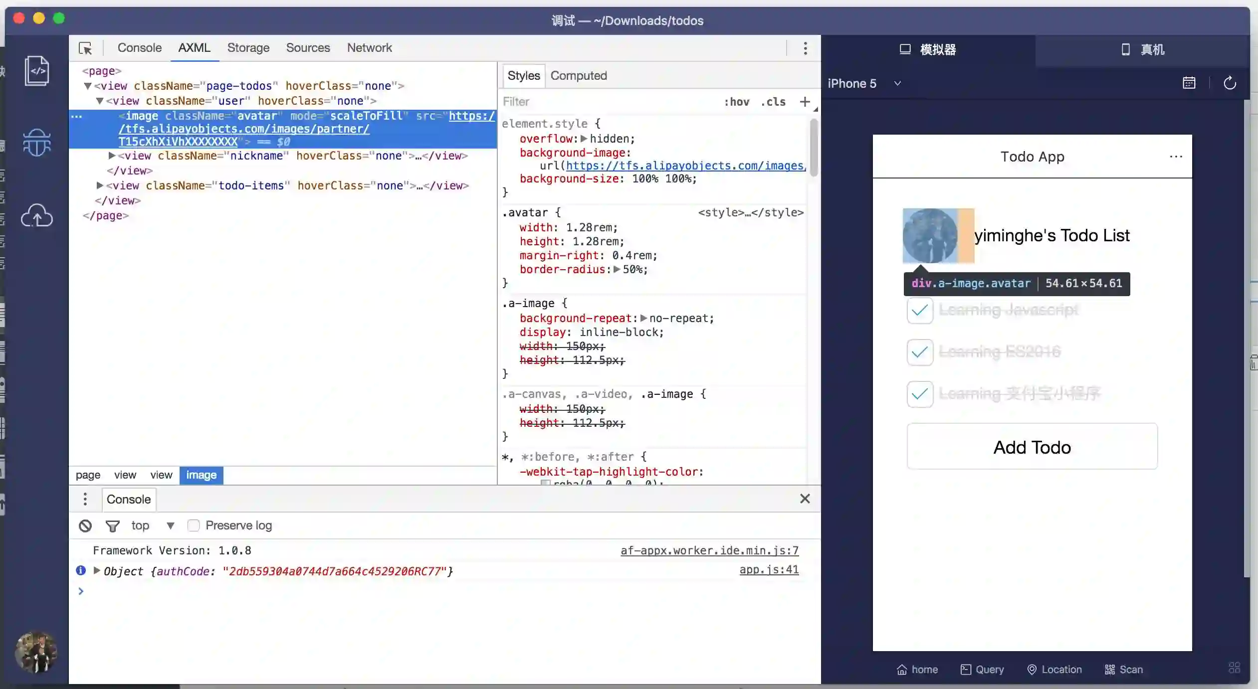 来搭建页面结构以及 a:for (https://docs.alipay.com/mini/framework/axml#列表渲染)绑定 todos 数据,并将 todos 数据循环展开节点。