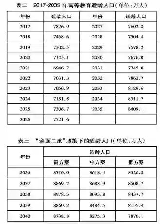 一、2017-2040年高等教育适龄人口预测