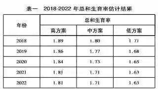 2018-2022年总和生育率的估计是本研究的难点,参考翟振武等(216)、梁文艳等(215)以及罗雅楠等(2016)相关文献,分高方案、中方案和低方案进行估计。由于“全面二孩”政策的实施会出现5年左右的补偿生育期(2016-2020年),且由于政策实施后从备孕到婴儿出生需要时间,参考黄匡时等(2016)和杨舸(2016)的研究,我们认为新政策下的短暂生育高峰会出现在2018年前后。参考2014年国家卫计委和中国人口学会的《实施全面两孩政策人口变动测算研究》相关研究结果,我们假定高方案下补偿生育期平均总和生育率为1.78,与国家卫计委《“十三五”卫生与健康规划》预计“十三五”期间总和生育率1.8相接近;中方案的平均总和生育率为1.72;低方案假定平均总和生育率为1.68。无论哪种方案,我们都假定2020年后人口总和生育率保持不变,最终总和生育率估计及设定见表一。