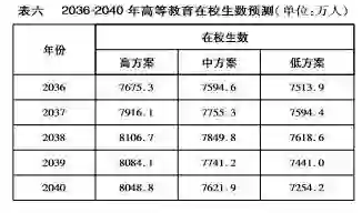 三、2017-2040年高等教育在校生数预测