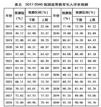(三)2017-2040年高等教育毛入学率预测
