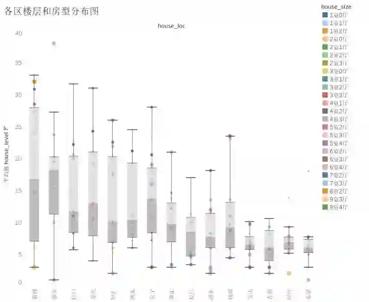 由此可知,越靠近市中心,二手房房源的楼层越高,楼层之间的方差也很大,郊区的二手房源正好与市区的趋势相反。