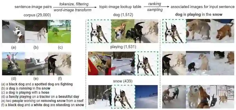 现在,这个图片集合就可以认为是和输入句子对应的视觉信息,可以用它去增强翻译效果了。下图是流程示意图: