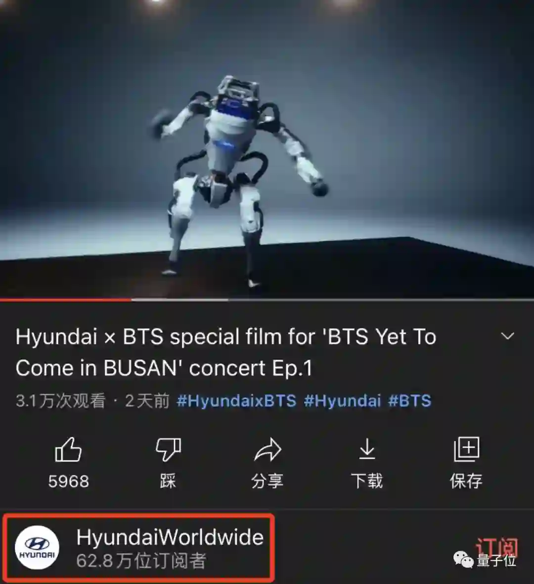 而现代的官方油管也是联动波士顿动力发布了该视频。
