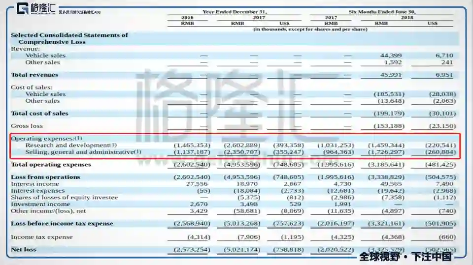 蔚来汽车的招股书显示,蔚来汽车在2018年上半年净亏损5.026亿美元,加之其在2016年及2017年两年间共计75.9亿元人民币的亏损额度,蔚来汽车累计亏损金额已经达到109.2亿人民币。而今年上半年的营收尚不足700万美元。
