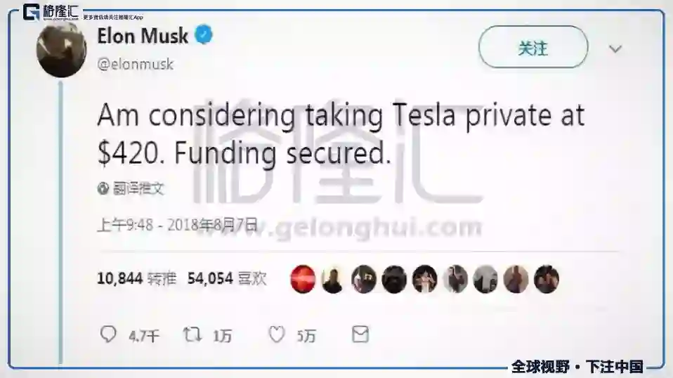 一个月前,特斯拉传来私有化的消息,马斯克称正在考虑私有化特斯拉,并且已经有资金保障了。马斯克一直苦于上市后做空机制、股价的剧烈波动和分析师的狂轰滥炸,想要退市脱离苦海。