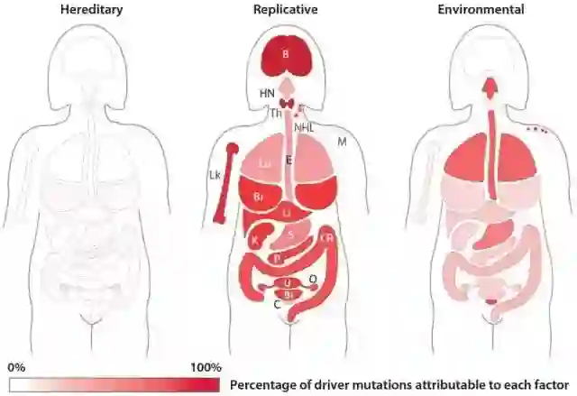 研究人员表示,虽然家族癌症病史或者吸烟等不良习惯是导致基因突变的元凶,但正常细胞分裂期间出现的随机性DNA复制错误是一个相当大的诱发因素。“在很多时候,这类基因突变不会带来任何伤害,”约翰斯·霍普金斯大学基梅尔癌症医疗中心(Johns Hopkins Kimmel Cancer Center)路德维希中心的联席主管贝尔特·沃格尔斯坦(Bert Vogelstein)表示。他指出,这类基因突变通常发生在人类DNA中不重要的地方。