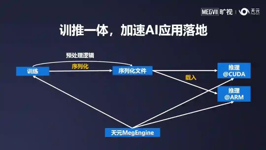 最后,随着大量云、端上的 AI 芯片的衍生以及各类神经网络加速器应用的愈加广泛,每家芯片自身的推理框架越来越强大。训推一体的核心是在训练阶段对芯片的充分了解和兼容,因此如何让用户能从一开始就训练出一个适用于最终要用到的芯片的模型,才是让整个落地流程最高效的重点。天元希望能够与芯片协同演进,协同发展,让整个生态能够更加健康蓬勃的发展。