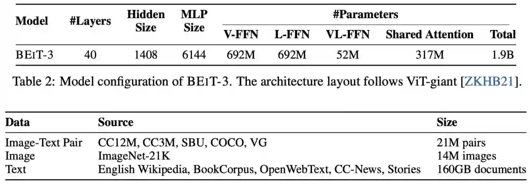 BEiT-3 模型参数分布及预训练数据