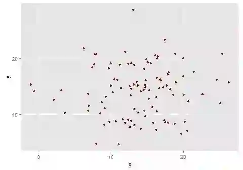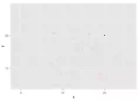 大家可以发现,我在(20,20)这个点的数据事实上是有20个的,但由于没做统计转换(20,20)这个点被画了20次,因此我们理论上看到的点其实是最后一次画的那个点。可能这不够直观,没关系,我们调整一下透明度到10%: