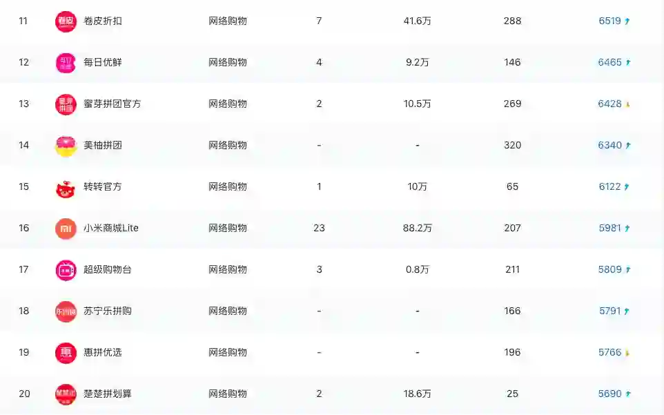 图3-2018社交电商榜(本图综合鲸准热度排序)