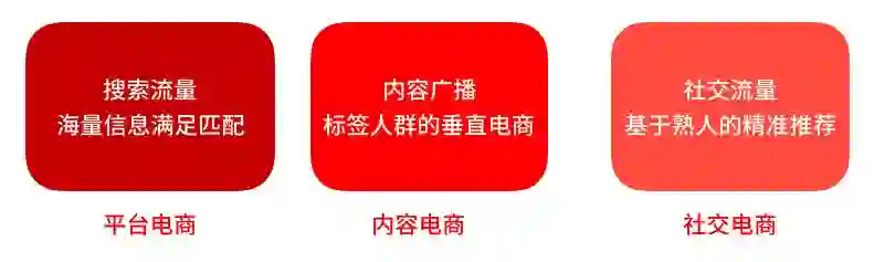 从人与货品交互的平台电商、人与内容关联的内容(社区)电商,到人与人之间基于信任的社交电商,其背景是流量越来越贵。不仅如此,流量的流向也在发生变化,平台时代靠工具搜索,内容时代靠情感广播,社交时代则是熟人之间的互动。