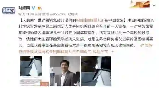 再过十几个小时,美国的洞察号探测器就要抵达火星了,这是地球文明的又一次真正的进步。在这样的时刻,这位中国的贺教授居然用这种有悖人伦的方式给这个世界造了两个婴儿,还洋洋得意地满世界发视频,这简直是文明的耻辱!当年纳粹在集中营做人体试验,也还没有高调成这个样子!