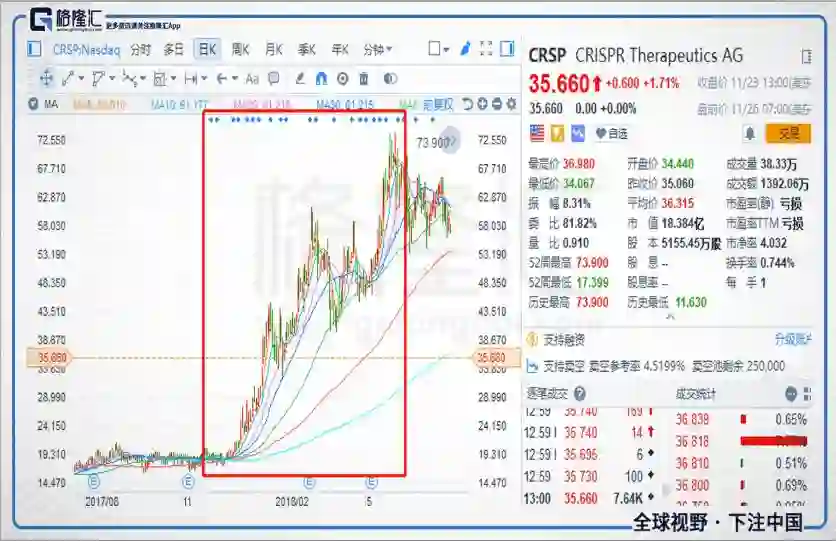 直接以CRISPR疗法命名CRISPR Therapeutics(CRSP)公司也乘着风迎来了狂欢。