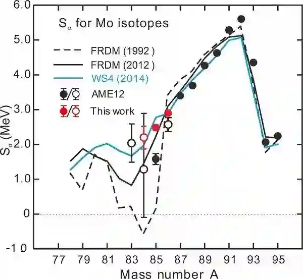 图1 基于本工作得到的丰质子区Mo同位素α分离能。