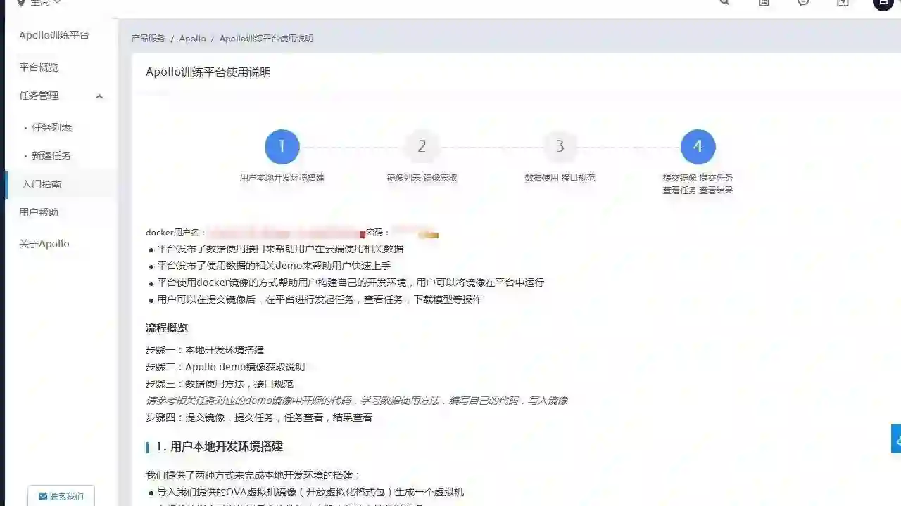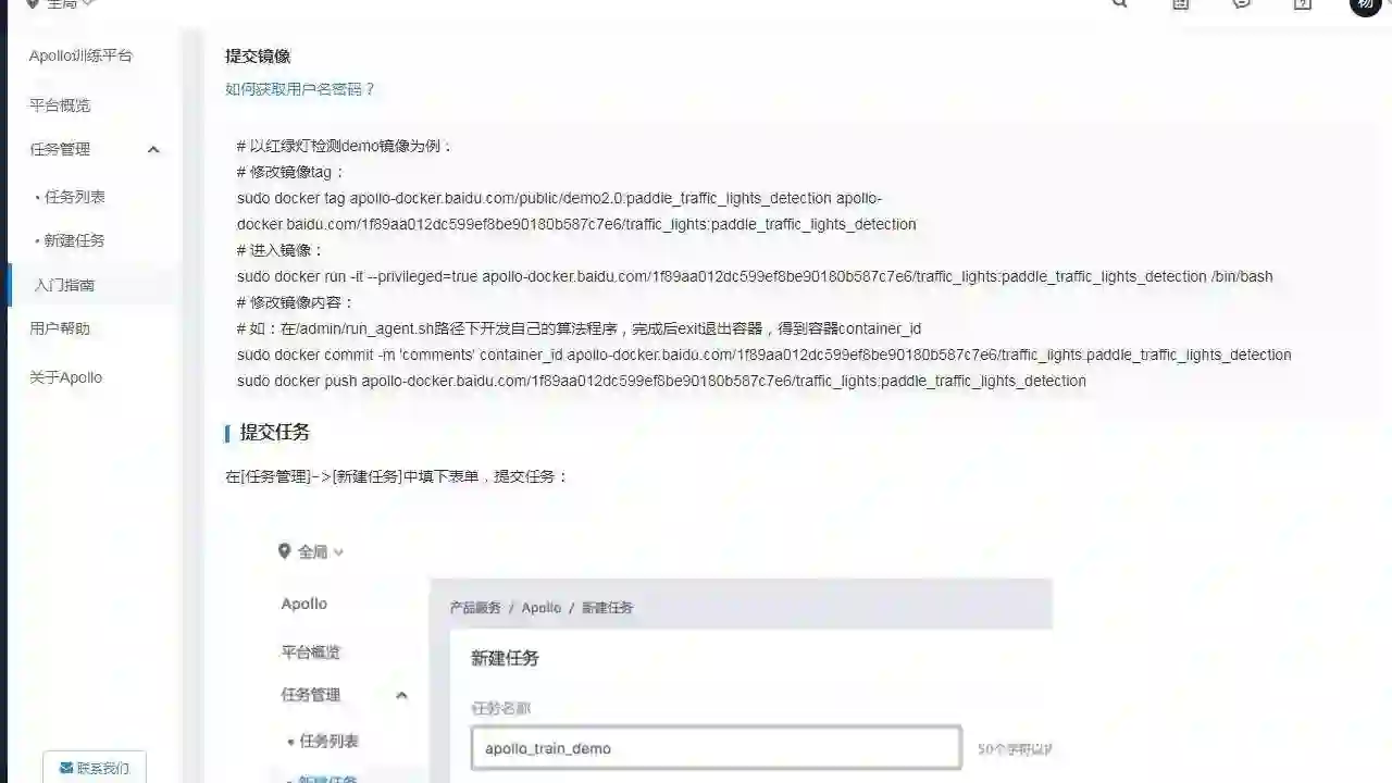 在申请通过后,“申请使用”按钮会变成“在线使用”,点击后会进入 Apollo 训练平台的新建任务(Apollo 训练平台有着较高的安全校验机制。初次使用需要设定云属性和联系方式,并签订使用协议书;当登录后过长时间未使用时,需要再次登录)。