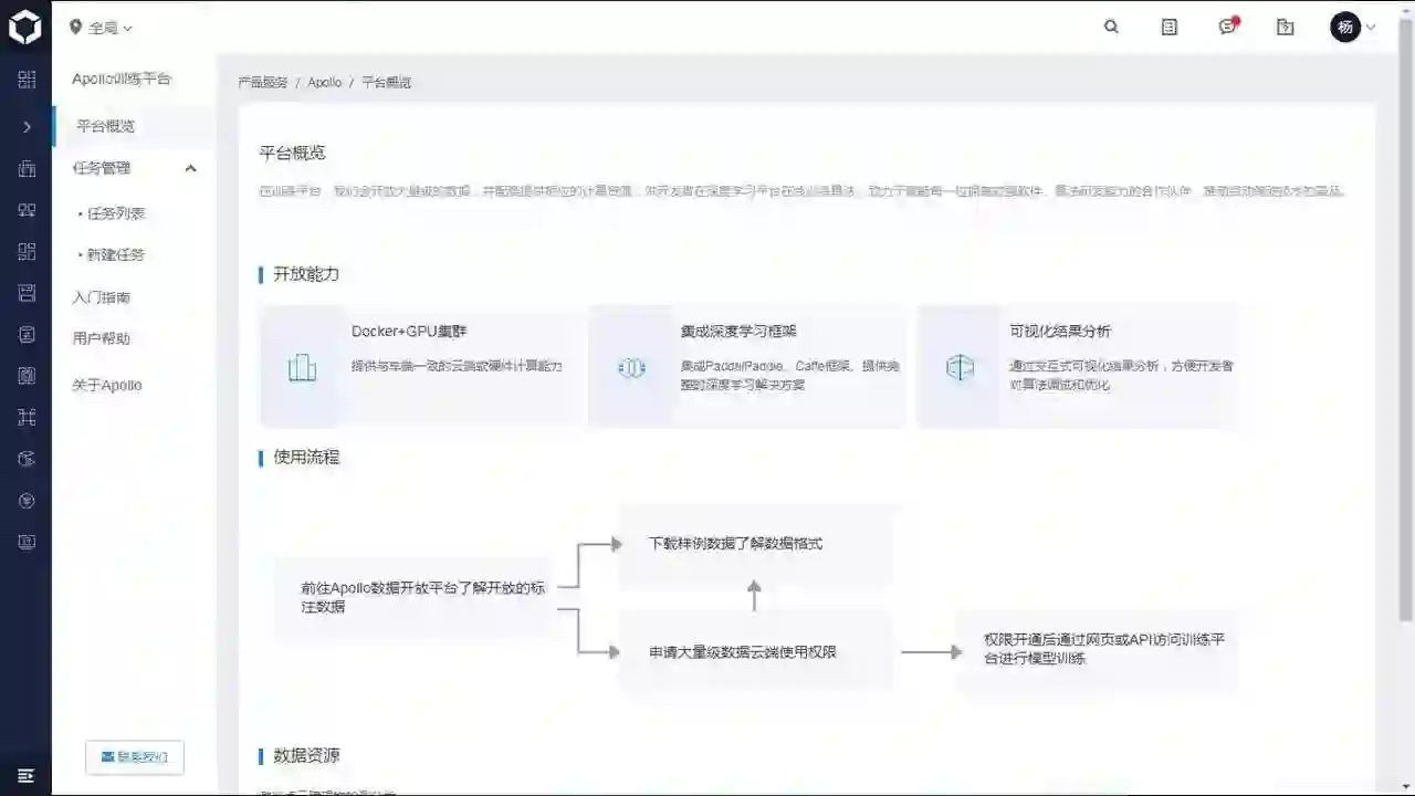 我们还通过 Apollo 训练平台为每一个数据集提供类配套的计算能力。