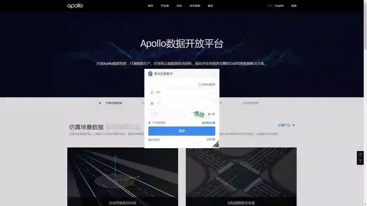 在 Apollo 数据开放平台的页面右上角,有登录菜单,点击后登陆百度帐号,会简化之后的使用流程。