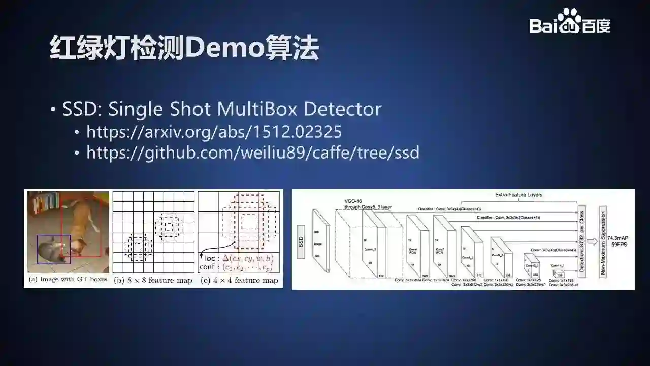 红绿灯检测,我们提供基于 SSD 算法的 Demo(Paddle、Caffe);