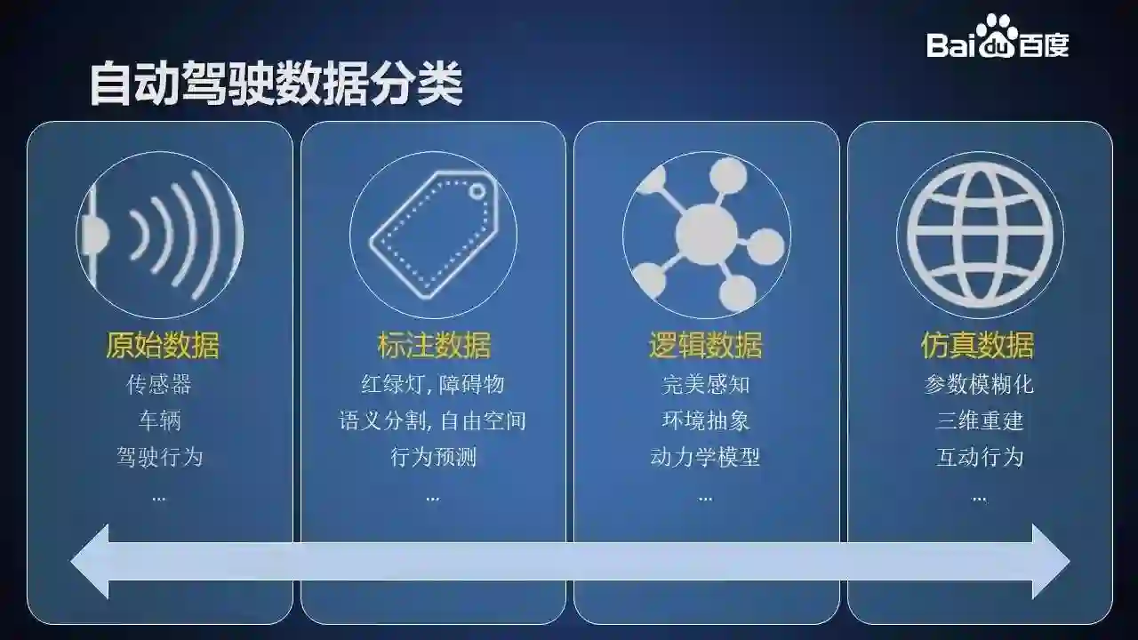 百度自动驾驶有非常强的能力来源于云端的。高精地图存储于云端,用以模拟驾驶的仿真服务也在云端,它加速了自动驾驶的研发效率。我们积累了大量的数据和对数据的理解。我们在云端也开放了数据平台,把数据加工的主线,在我们云端来体现出来。在云端还有我们的安全服务,保证软件的自动更新。