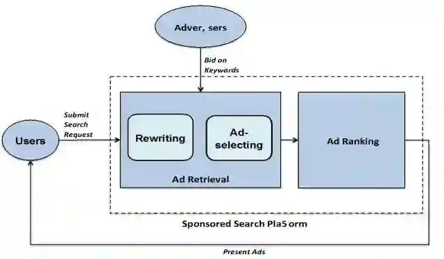 在传统的搜索广告系统中,广告商必须为自己的广告选择竞价关键词。平台进行广告检索时会受到竞价关键词的约束。如果广告商没有事先为广告购买相应的关键词,那么即使用户搜索请求与广告紧密相关,平台也不会检索回这些广告。但是,受限于市场信息的缺失和投放管理的巨大成本,广告商有时并不能及时准确地为自己的广告选择出最合适的关键词。在这种情况下,广告检索算法不能实现最优的流量匹配,给广告商、用户和平台三方均带来了损失。