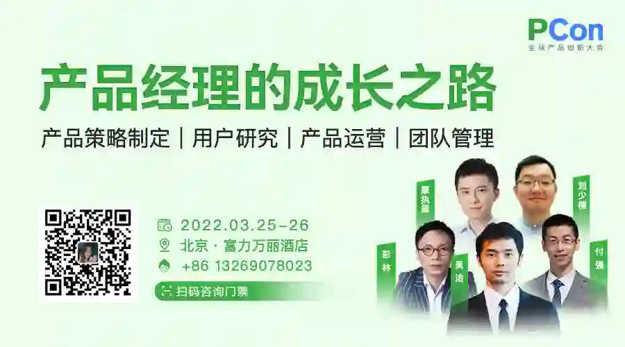 PCon 全球产品创新大会将于 2022 年 3 月 25-26 日 落地北京,9 大产品专题,50+ 来自 Google、小米、字节跳动、芒果 TV、阿里巴巴、Soul、小罐茶、爱奇艺、钉钉等企业的产品专家,齐聚一堂,分享各自在产品创新、产品运营、团队成长等方面实战经验,是产品经理不容错过的学习之旅。