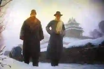 油画:李大钊和陈独秀在北京相会。