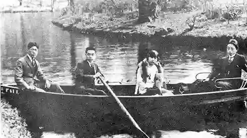 1922 年,左起为赵光宸、周恩来、刘清扬和张申府,于德国柏林万赛湖游船上合影。