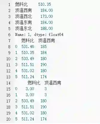 data_5row_2col=data.ix[0:5,[u'燃料比',u'顶温西南']